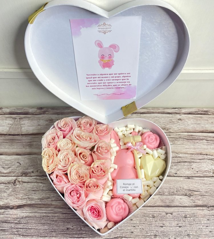 • Caja de lujo corazón grande Rosas y conejo