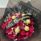 Buchón 24 rosas, con cinta marcada y Ferreros