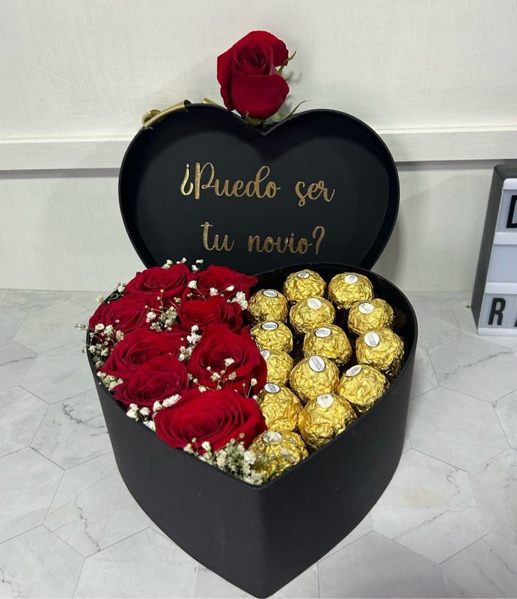 Este hermoso corazón de lujo reúne rosas frescas con el sabor inconfundible de Ferrero Rocher, creando un detalle que destaca por su belleza y delicadeza. Es una opción ideal para quienes desean sorprender con algo pensado y lleno de intención. Una elección encantadora para regalar en fechas importantes o celebraciones emotivas.