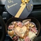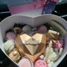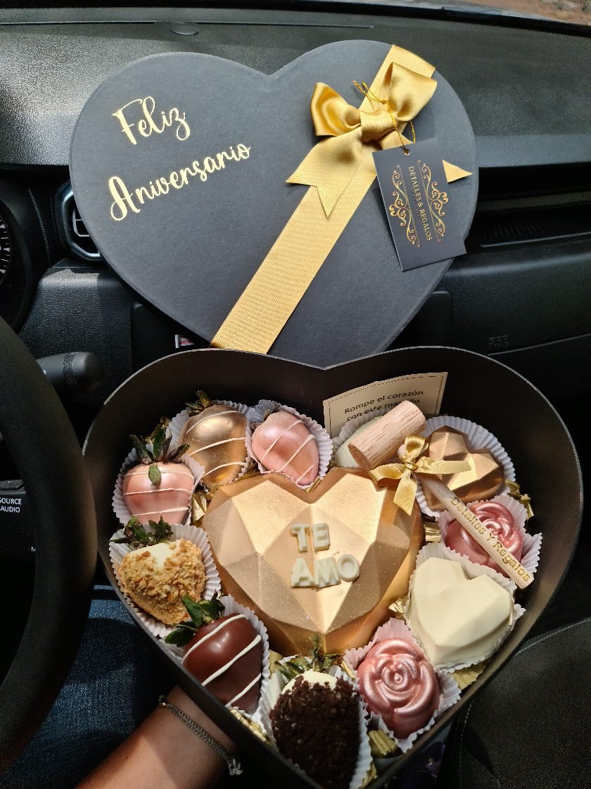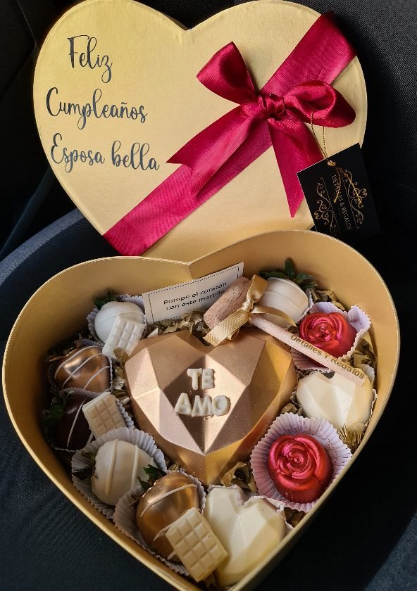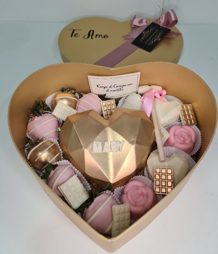 Caja corazón de lujo Grande, corazón 3D chocolates rellenos y fresas con chocolate.