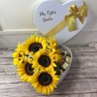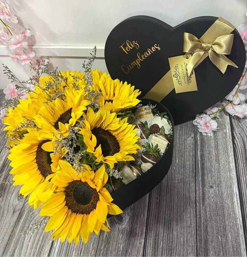 Caja de lujo corazón girasoles y fresas con chocolate