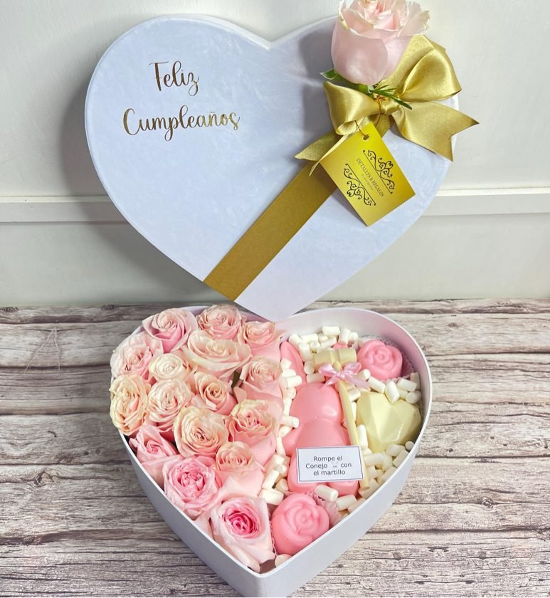 Un detalle que conquista con ternura y elegancia. Nuestra Caja de Lujo Corazón Grande combina la belleza clásica de las rosas 🌹 con la dulzura de un adorable conejo de chocolate 🐰. Es el regalo perfecto para expresar amor, cariño o admiración, envolviendo cada sentimiento en una presentación delicada, sofisticada y llena de encanto. Ideal para sorprender a quien más quieres.