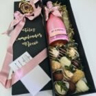 La combinación de fresas y vino crea un acompañamiento perfecto para momentos de disfrute y compartir. La caja de lujo añade un toque sofisticado a esta selección.