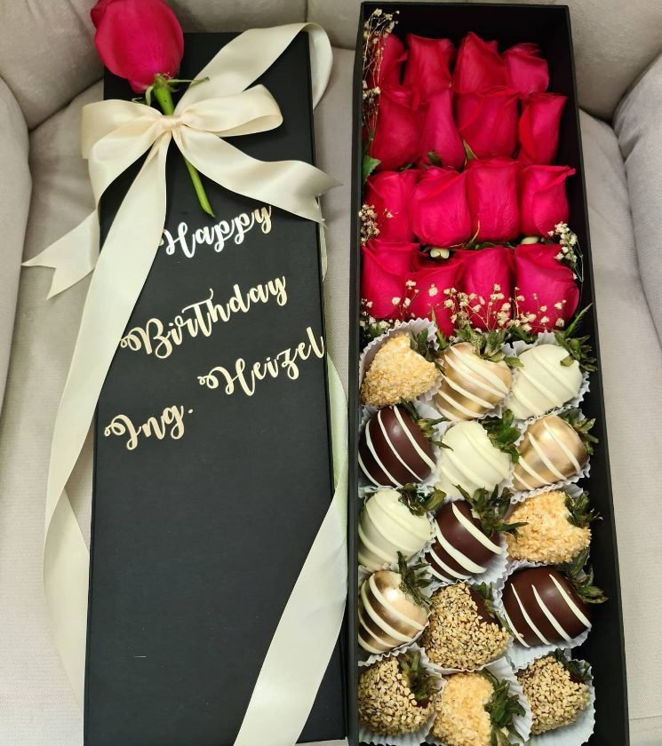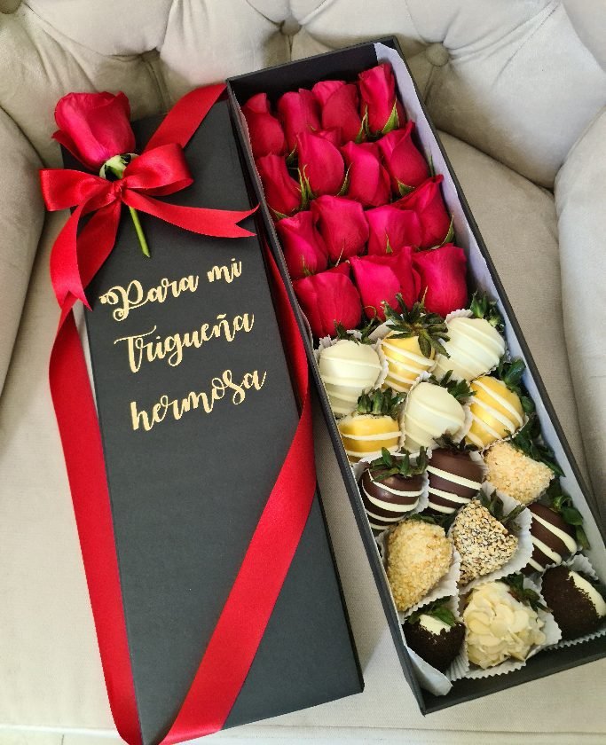 Caja de lujo Oslo – rosas y fresas