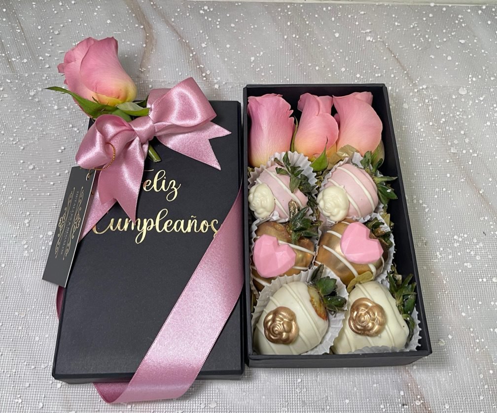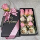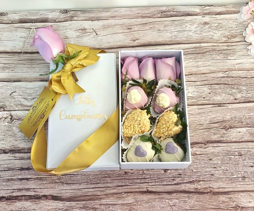 Caja de lujo pequeña con fresas y rosa