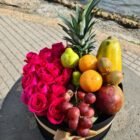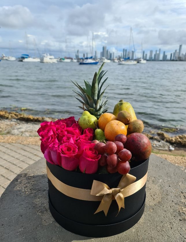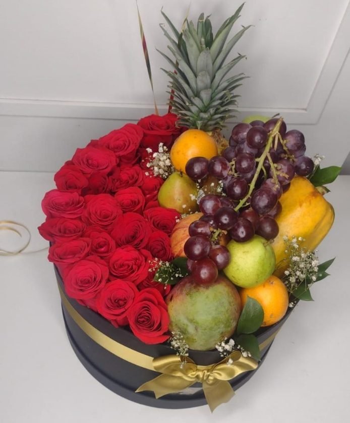 Caja de lujo XL con rosas y frutas. Un detalle elegante y lleno de vida que combina la frescura natural de las frutas con la delicadeza de las rosas. Perfecto para celebraciones, aniversarios, agradecimientos o momentos especiales. Su presentación premium la convierte en un regalo que siempre encantará.