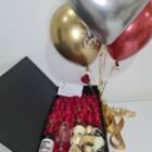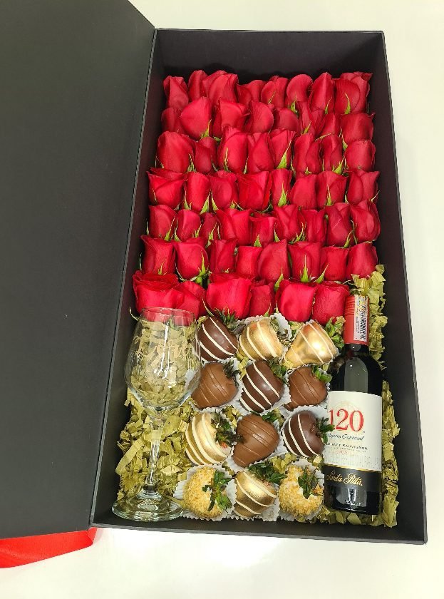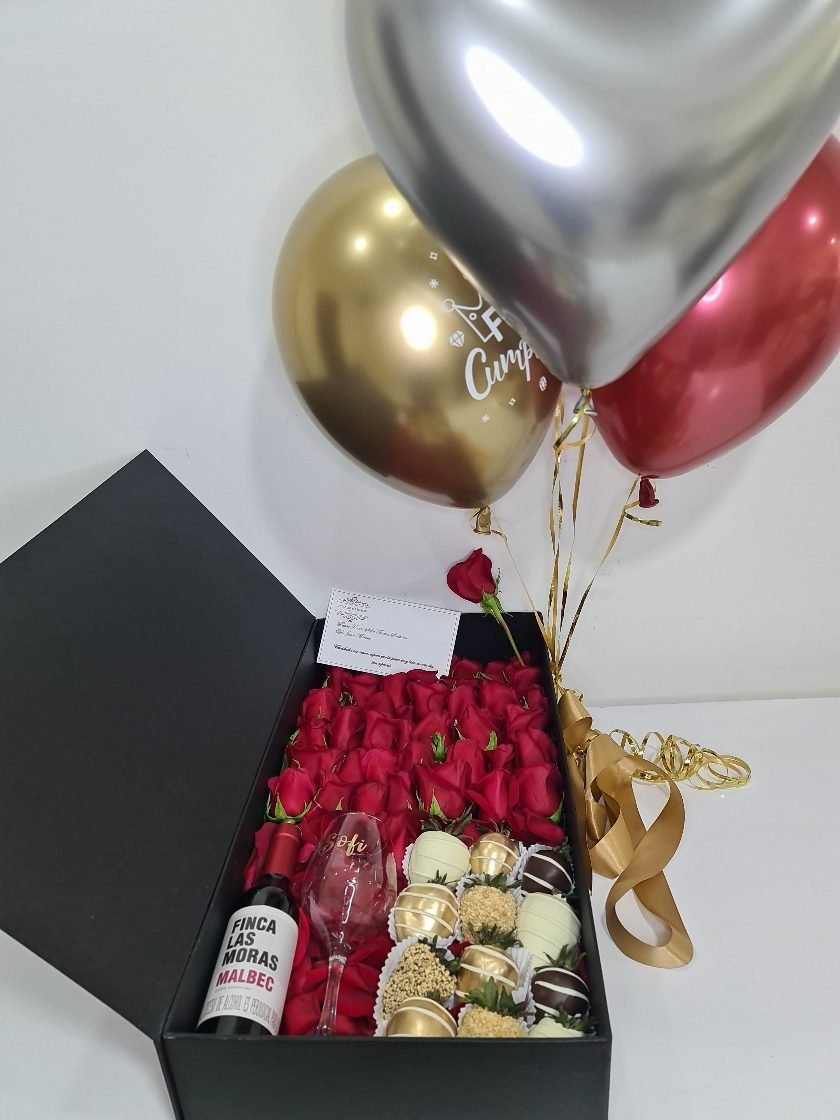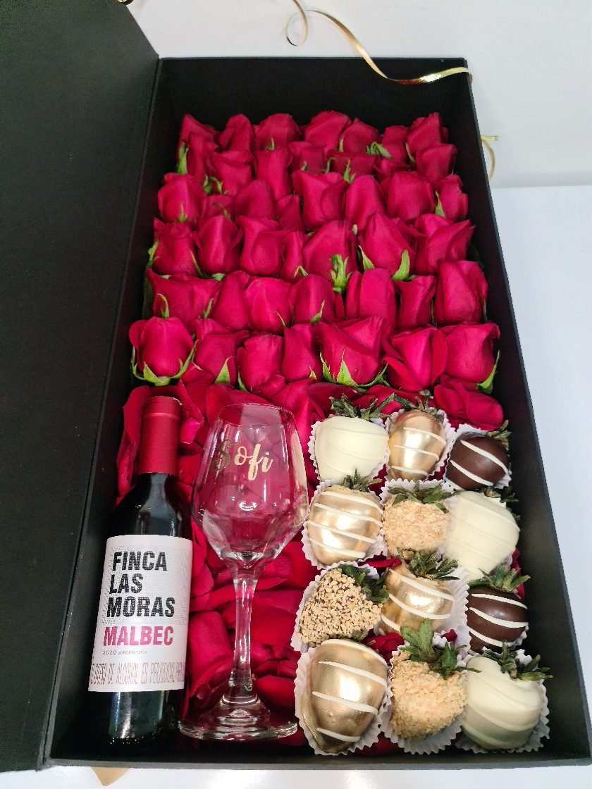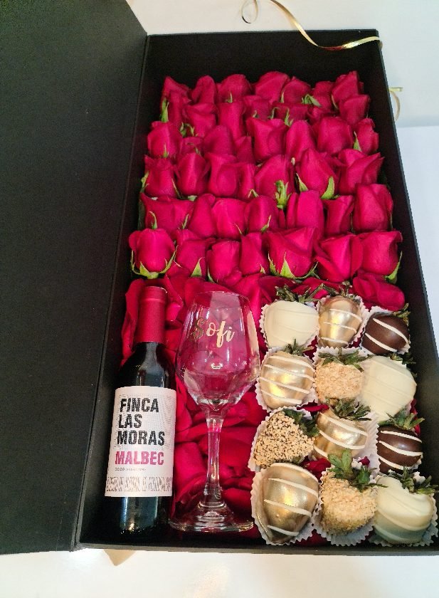 La Caja Estuche de lujo XL es un regalo sofisticado pensado para crear momentos inolvidables. Incluye flores frescas cuidadosamente seleccionadas, fresas cubiertas con chocolate que aportan un toque dulce y elegante, un vino ideal para brindar en ocasiones especiales y una copa que complementa la experiencia. Cada detalle está diseñado para transmitir lujo, romanticismo y buen gusto, convirtiéndola en la opción perfecta para aniversarios, celebraciones o sorpresas especiales. Precio sujeto a cambios.