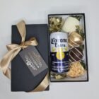 Una caja pequeña ideal para regalar, que incluye una lata de cerveza y fresas. Perfecta para compartir momentos especiales.