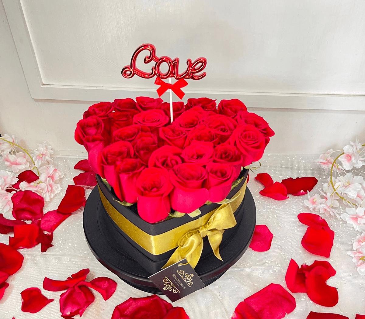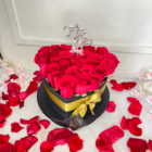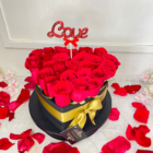 Este corazón de lujo mini es un detalle pequeño en tamaño, pero enorme en significado. Sus rosas frescas transmiten amor y ternura, mientras que el topper con mensaje agrega ese toque personal que hace especial cualquier ocasión. Un regalo pensado para expresar sentimientos sinceros de una forma delicada y encantadora.