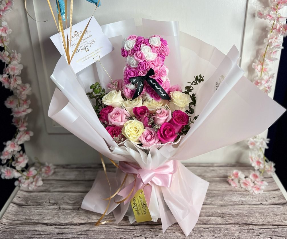Regala un encantador ramo de rosas acompañado de un tierno osito Teddy, una combinación perfecta para sorprender y llenar de alegría a esa persona especial. Ideal para cumpleaños, aniversarios o momentos románticos, este detalle une elegancia y dulzura en un solo regalo que expresa cariño de forma única.