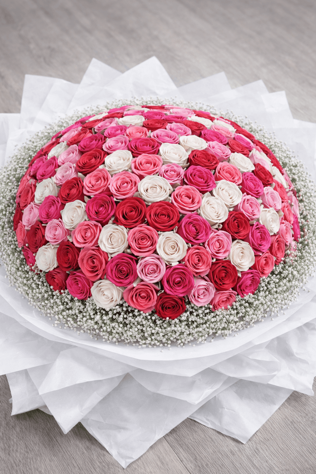 Ramo buchón de 200 rosas tipo exportación, cuidadosamente seleccionadas por su tamaño, frescura y color intenso. Un arreglo imponente y sofisticado, ideal para sorprender en grande y expresar amor, admiración o celebración sin límites.